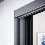 - Függőleges napellenző alumínium dobozzal és sínes megvezetéssel